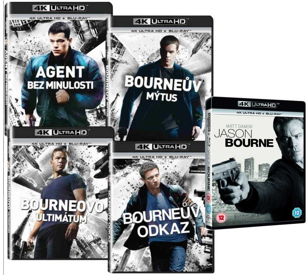 Blu-ray 4K UHD Bourneova kolekce 5 filmů obsahuje 5x 4K Ultra HD Blu-ray + 4x Blu-ray